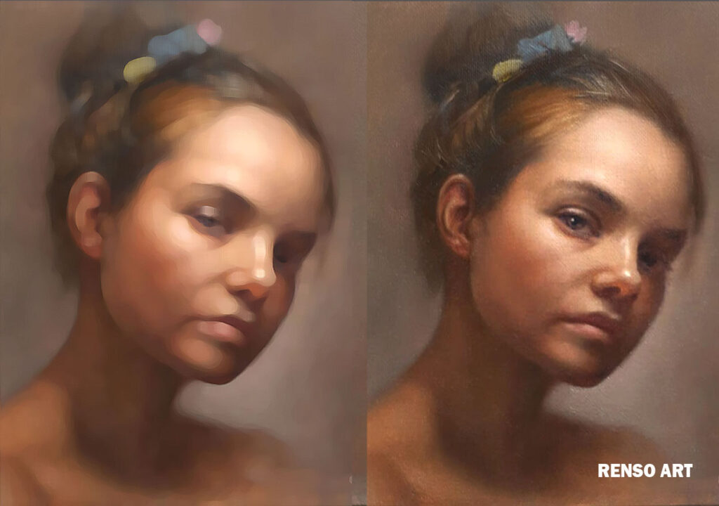 A mix of sharp, soft, and lost edges creates rhythm and realism — especially in portraits, animals, and still lifes.